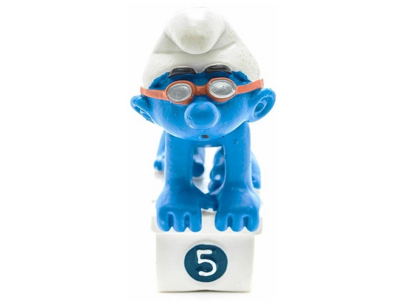 Сегодня Смурфы решили заняться спортом. Они такие выдумщики, что каждый раз придумывают что-то новое. Спортивный бег, езда на роликах и коллективный волейбол позади, а значит пришло время поплавать. Для этого гномы соорудили у себя во дворе настоящих бассейн и обзавелись всем необходимым: плавательными костюмами и очками. Этот пловец уже занял место для старта на тумбочке под номером пять. Фигурка смурфа станет прекрасным дополнением коллекции фигурок от Schleich (Шляйх). Это реалистичные игрушки, с которыми особенно интересно играть. Такие фигурки приятно дарить и получать в подарок.