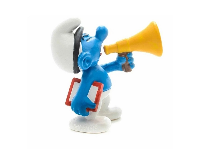 Смурфики очень любят путешествовать и вот однажды, во время очередного своего странствия, они увидели, как люди снимают фильм, причем фильм про них. Это было так удивительно и интересно, что по приезде домой один из Смурфов тоже вообразил себя продюсером. Он соорудил себе кепку, написал в тетрадке сценарий и целыми днями ходил по деревне с граммофоном, выкрикивая в него что-то вроде «Где операторы? Куда камера поехала?» или «Нужно переснять еще один дубль». Фигурка смурфа станет прекрасным дополнением коллекции фигурок от Schleich (Шляйх). Это реалистичные игрушки, с которыми особенно интересно играть. Такие фигурки приятно дарить и получать в подарок.