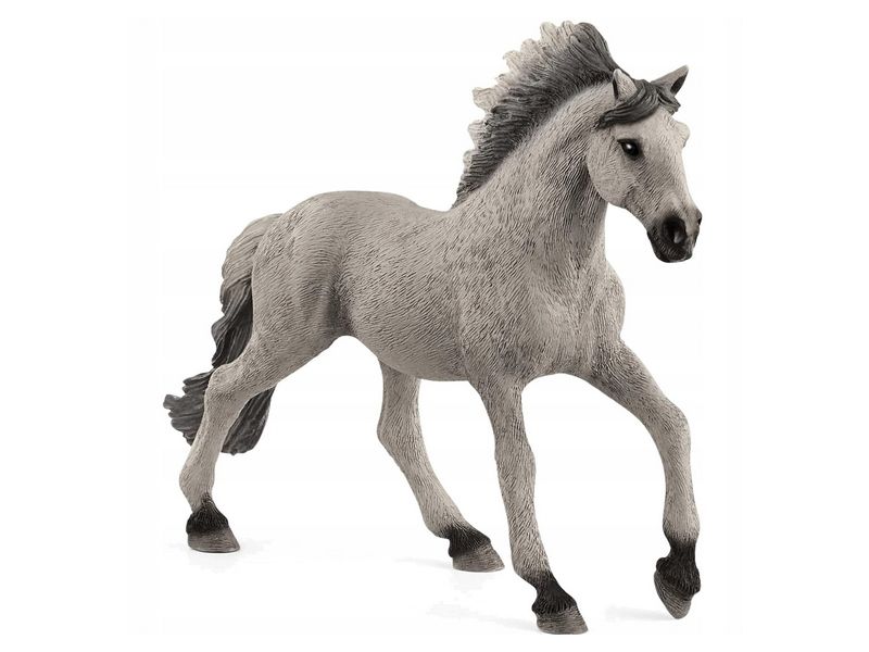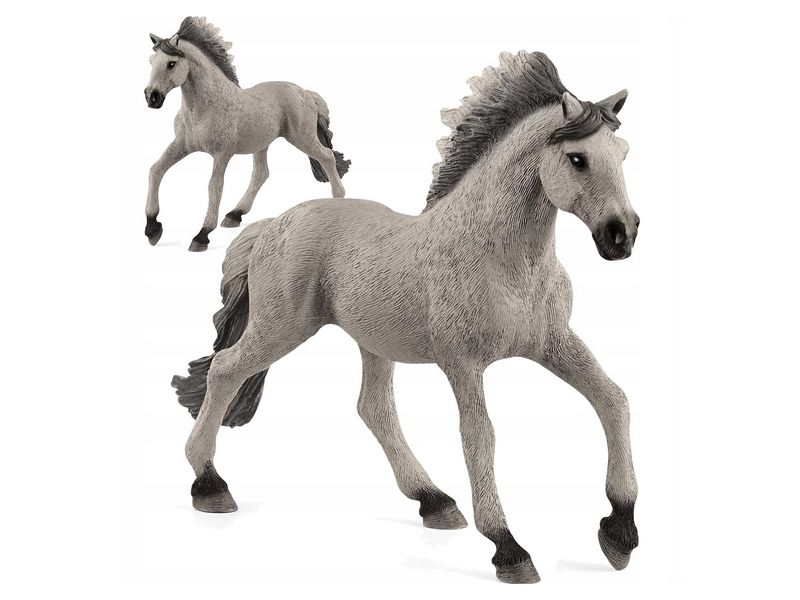 Мустанг Соррайя от Schleich относится к очень старой и редкой породе лошадей из Португалии. Лошади этой породы имеют на своей спине характерную узкую темную полосу, а также они отличаются шерстью буланого цвета и темной мордой. Грива и хвост демонстрируют еще одну особенность этой породы: они всегда двухцветные! Лошади Соррайя считаются предками андалузских и лузитанских лошадей. Им они обязаны высокой и крепкой шеей.