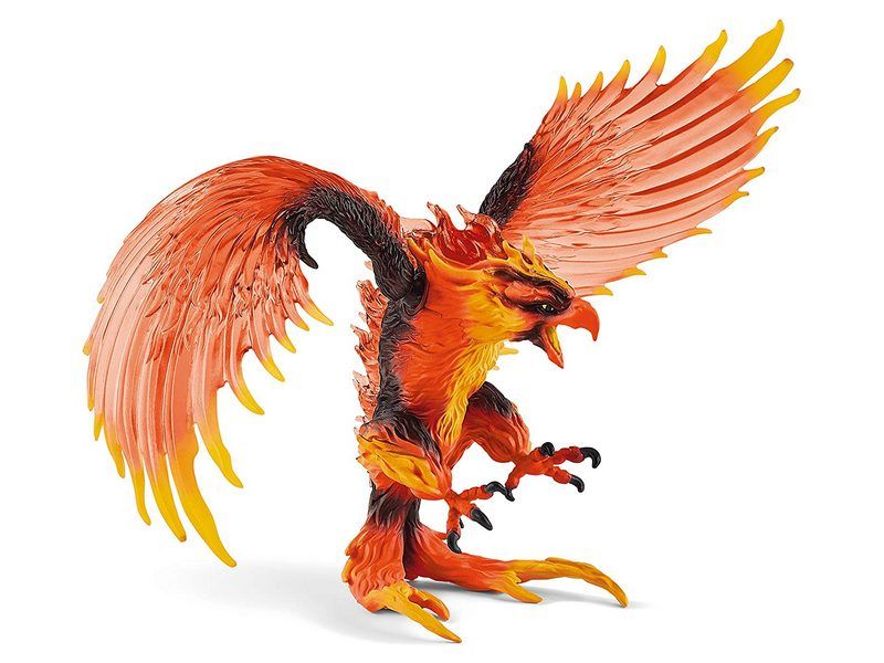 Огненный орел от Schleich - новая впечатляющая фигурка из серии Eldrador Creatures. Хищная птица способна кружить над вулканами, хлопая своими огромными мощными крыльями. Острые когти огненного орла способны подхватить врага налету. Ой! Другое оружие который он использует в атаках - это его изогнутый и заостренный клюв. В довершение всего, огненный орел с крыльями создает огромный огненный шторм, который просто сметает врагов с ног.