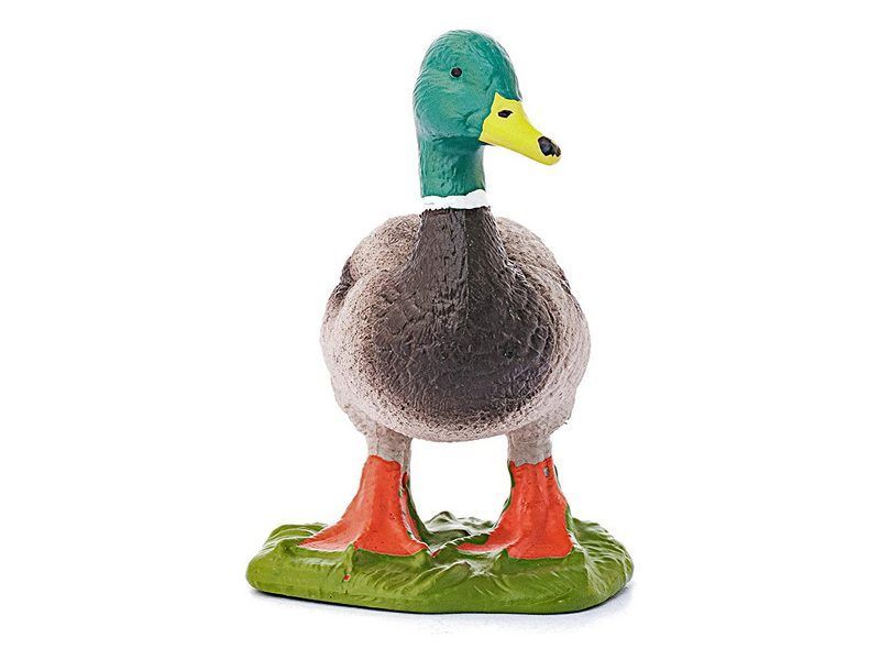 Селезень – это самец утки, который лишь размерами и длиной шеи отличается от гуся. Игрушка Schleich точно копирует птицу, демонстрируя главные ее особенности: зеленый окрас головы четко отделен от серо-коричневых перьев тела белым кольцом.