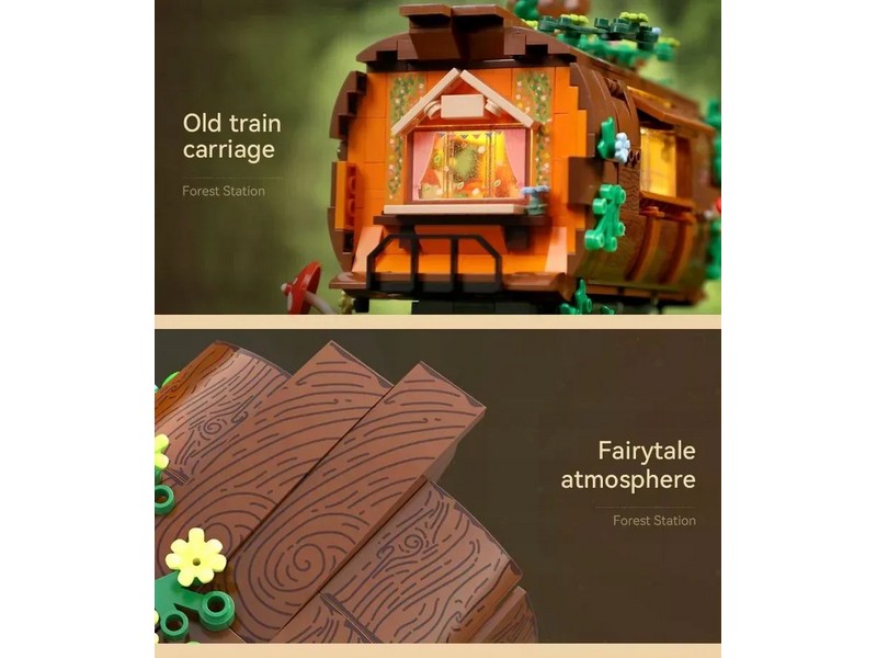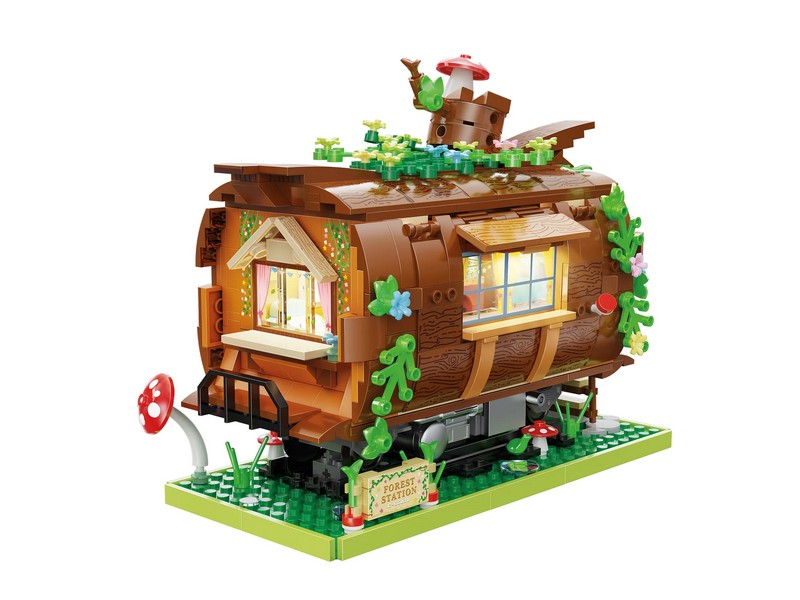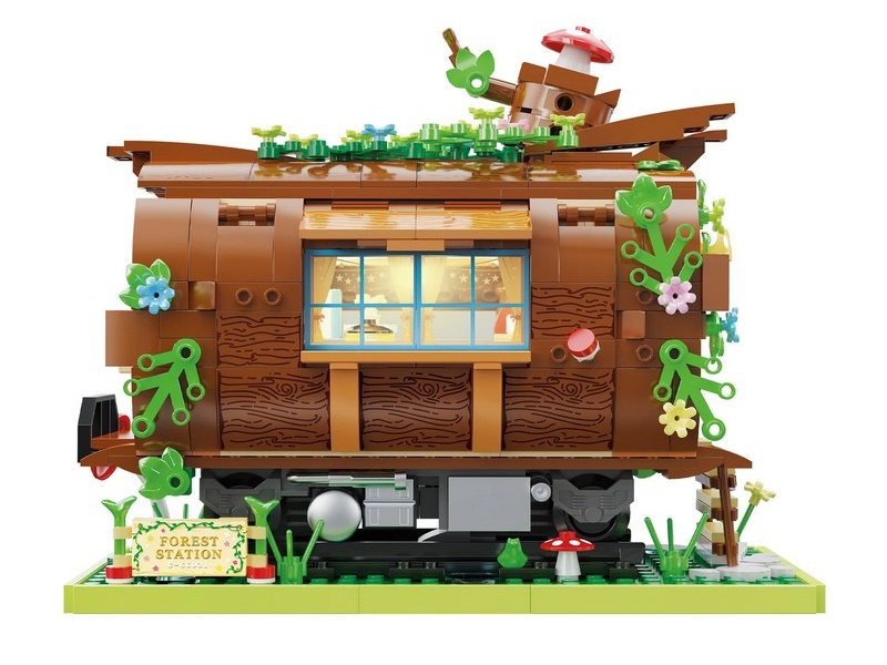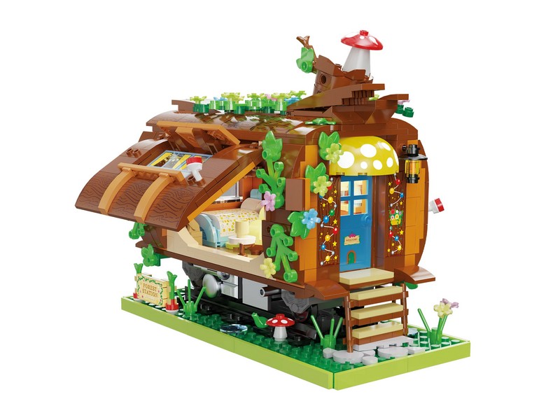 Уникальный дизайн позволяет заглянуть внутрь вагона: открывается входная дверь, открывается окно, открывается стена. Внутри вагончика, напоминающего вагон в полом стволе дерева, находится диван с подушкой, стол с кружкой, старая кровать, тумбочка с лампой и коврик под кроватью. Снаружи много растений, которые могли бы сравниться с фургоном, брошенным в лесу. Транспортное средство на колесах приспособлено для квартиры, у него есть окна, двери, освещение и лестница, ведущая внутрь. Дополнительным элементом является табличка с надписью «Лесная станция».