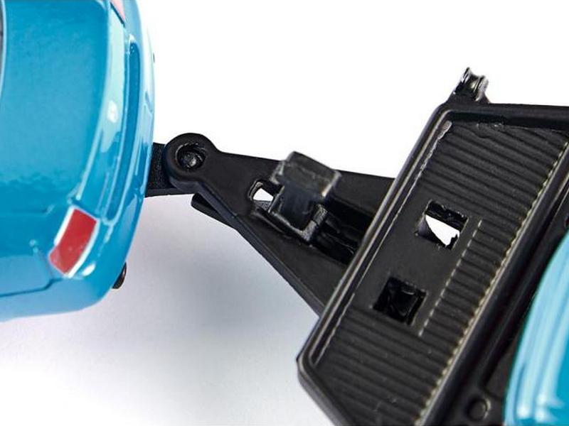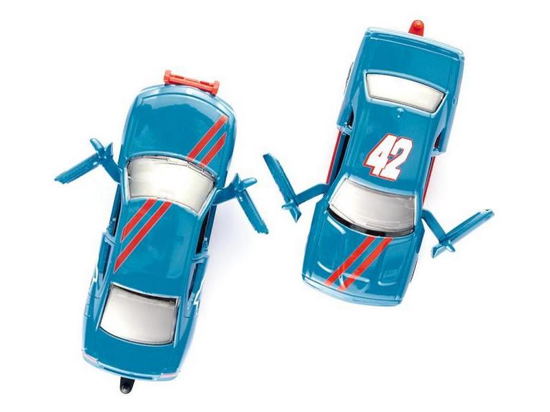 Модели выполнены в ярком голубом цвете. Корпуса игрушечных автомобилей выполнены из металла, стёкла из прозрачного пластика, двери открываются, колёса выполнены из резины и вращаются, автомобили можно катать.
