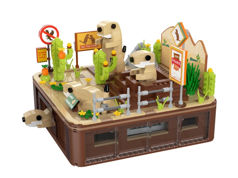 Конструктор от CADA для сборки диорамы Жизнь сурков. На обширных лугах живет группа умных сурков. Некоторые из сурков наблюдают, некоторые охотятся, некоторые роют ямы, а некоторые играют. Набор «Жизнь сурков» представляет собой замечательное сочетание захватывающей эстетики и механической изобретательности, предоставляя детям увлекательную платформу для творчества. Разработанный для детей от 8 лет, этот набор предлагает богатый набор из сложных деталей, включая реалистичные кактусы, сорняки, дорожные знаки и следы нор сурка.