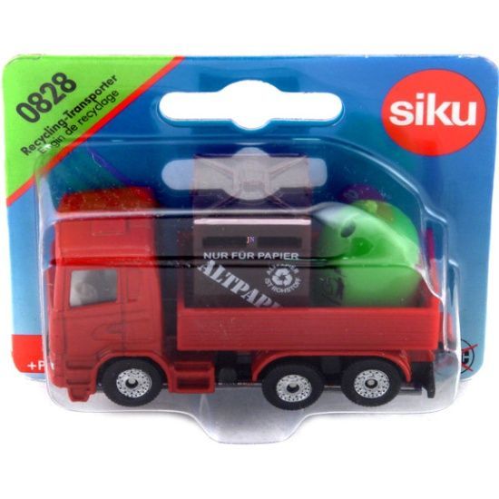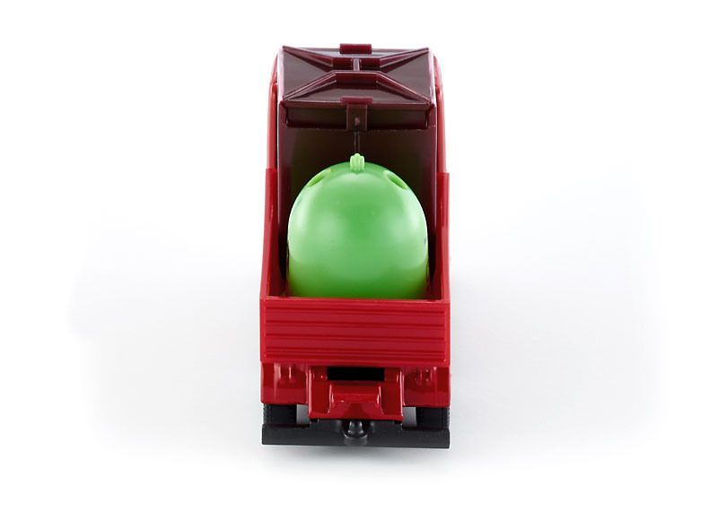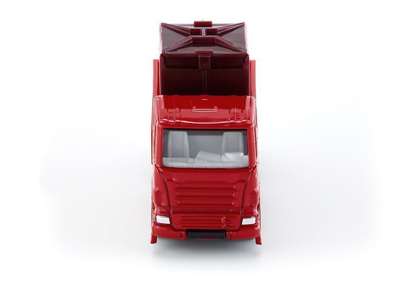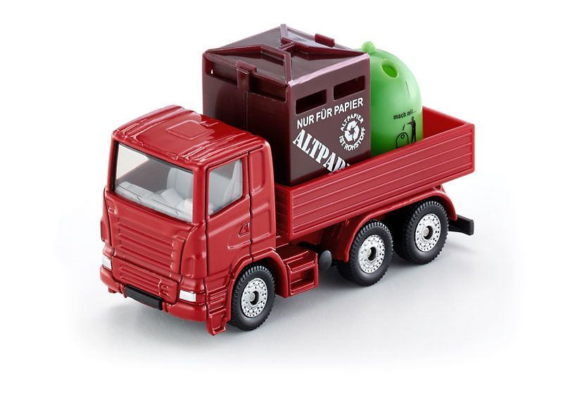 Игрушечная модель мусоровоза с контейнерами для сборки мусора от Siku. Кабина и шасси выполнены из металла, лобовое и боковые стёкла - из прозрачного пластика, кузов - из пластмассы. Колёса вращаются и позволяют катать модель. Контейнеры можно вытаскивать из кузова.