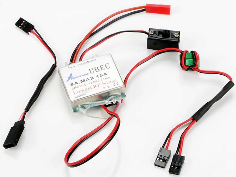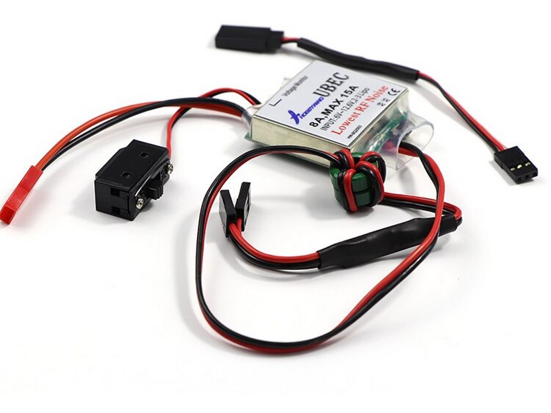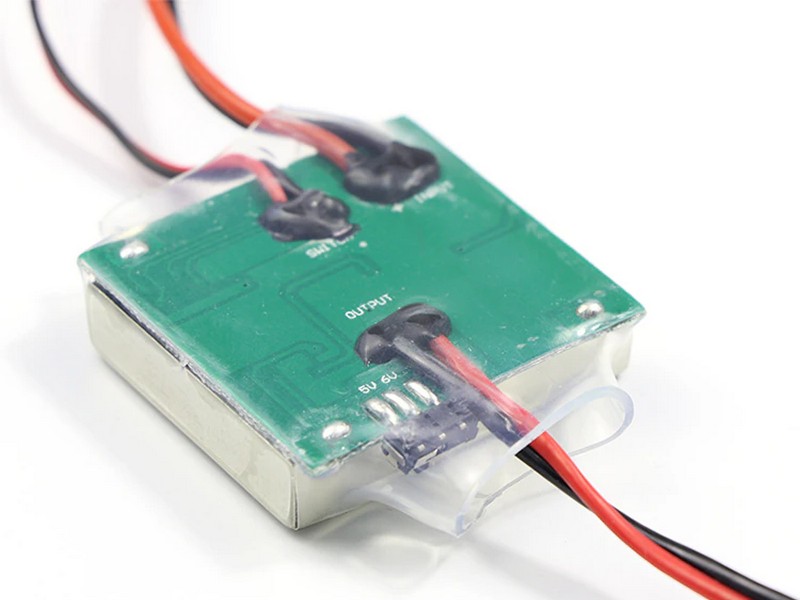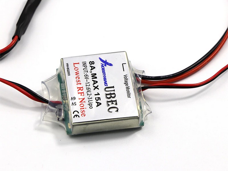 Импульсный регулятор напряжения HobbyWing UBEC-8A понижает выходное напряжение силовой батареи 2-3S LiPo до необходимого уровня 5V или 6V.Использование импульсного преобразователя необхо…