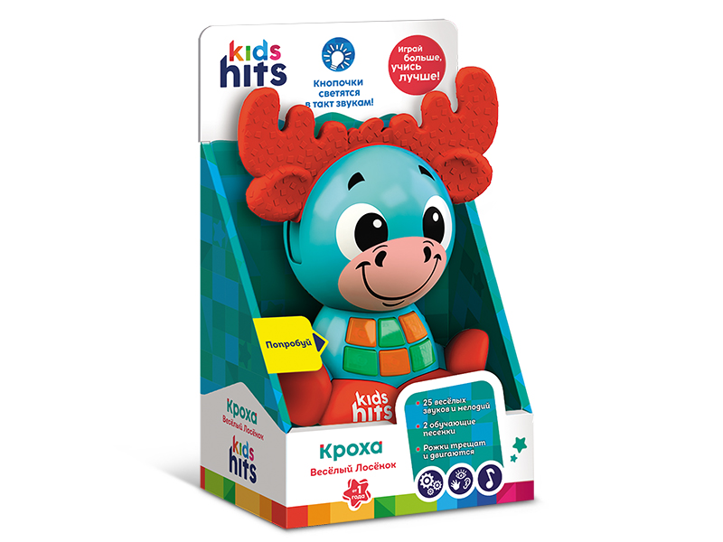 Интерактивная игрушка Kids Hits серии Кроха "Веселый лосенок" — это настоящая находка для маленьких исследователей! Лосенок привлекает внимание яркими огоньками, ритмичными мелодиями и разнооб…