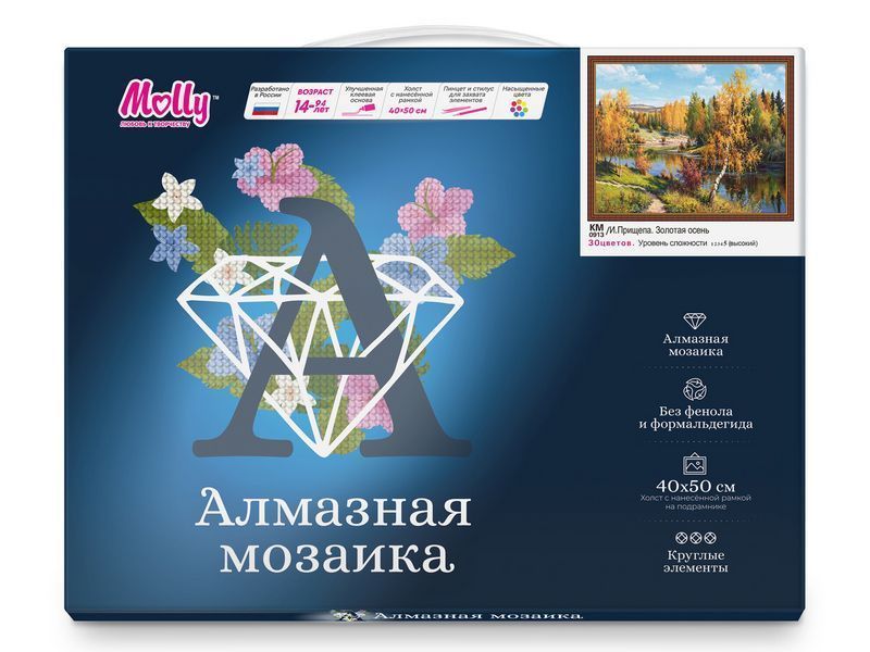 Алмазная мозаика - наборы, в которых желаемое изображение выкладывается на основе со схемой рисунка при помощи специальных декоративных элементов. Подсказка в виде нанесенного контура существенно облегчает задачу и дает возможность создавать картину даже людям, не имеющим художественных навыков. Готовая картина переливается на свету всеми цветами радуги. К тому же, принцип рисования по номерам, заложенный в основу создания алмазной мозаики, делает такое творчество доступным каждому и исключает неудачи.