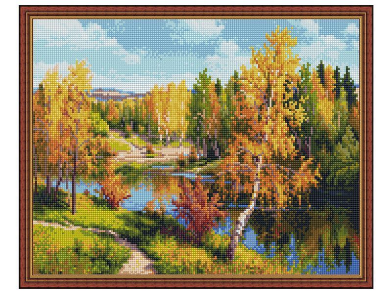С помощью мозаичных элементов на холсте можно выложить картину русского художника Игоря Прищепы "Золотая осень". Неуловимое очарование осень запечатлел на своей картине художник Игорь Прищепа.