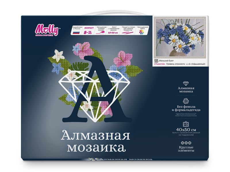 Алмазная мозаика - наборы, в которых желаемое изображение выкладывается на основе со схемой рисунка при помощи специальных декоративных элементов. Подсказка в виде нанесенного контура существенно облегчает задачу и дает возможность создавать картину даже людям, не имеющим художественных навыков. Готовая картина переливается на свету всеми цветами радуги. К тому же, принцип рисования по номерам, заложенный в основу создания алмазной мозаики, делает такое творчество доступным каждому и исключает неудачи.