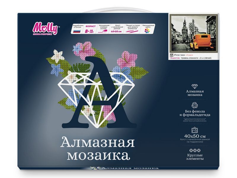 Алмазная мозаика - наборы, в которых желаемое изображение выкладывается на основе со схемой рисунка при помощи специальных декоративных элементов. Подсказка в виде нанесенного контура существенно облегчает задачу и дает возможность создавать картину даже людям, не имеющим художественных навыков. Готовая картина переливается на свету всеми цветами радуги. К тому же, принцип рисования по номерам, заложенный в основу создания алмазной мозаики, делает такое творчество доступным каждому и исключает неудачи.