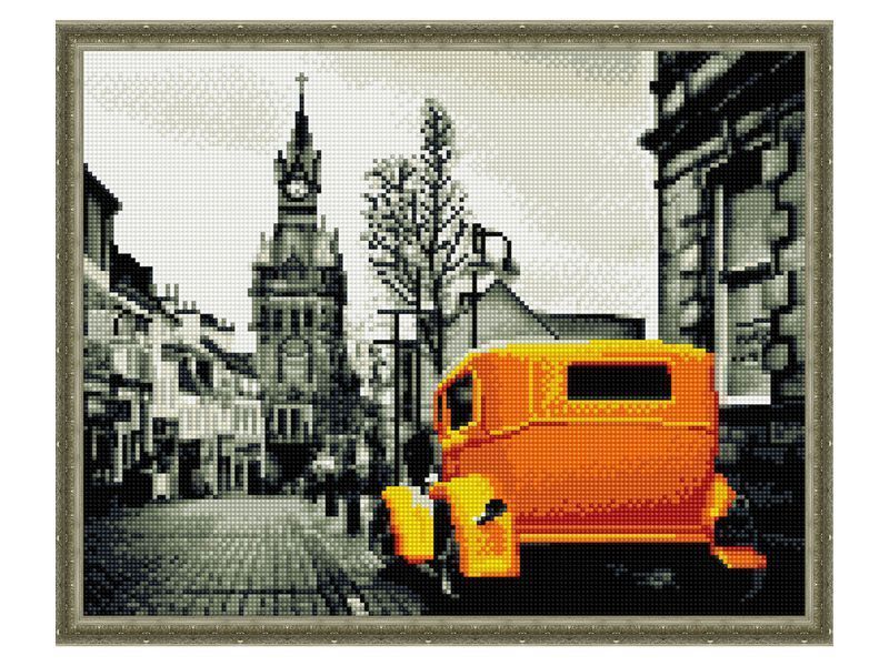 Ретро такси ярко-желтого цвета можно выложить из мозаичных элементов на холсте. Такси в Лондоне - это отдельная культура, а профессия таксиста - одна из наиболее уважаемых. Что и говорить, для того, чтобы стать таксистом необходимо сдать экзамен.