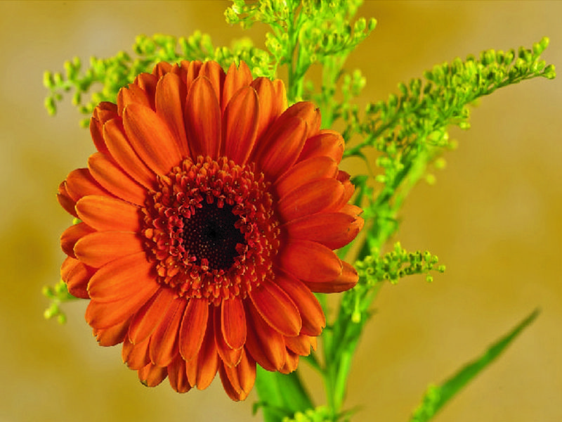 Используя кисти и краски, на холсте можно нарисовать картину "Гербера" - многолетнюю, яркую герберу на зеленом фоне. Для такого творчества не требуются специальные художественные навыки. Нужно лишь следовать инструкции и время от времени сверяться с цветовой схемой рисунка.