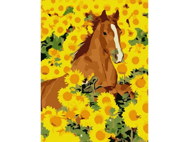 Картина по номерам 15х20 ЛОШАДЬ В ПОДСОЛНУХАХ (13 цветов)