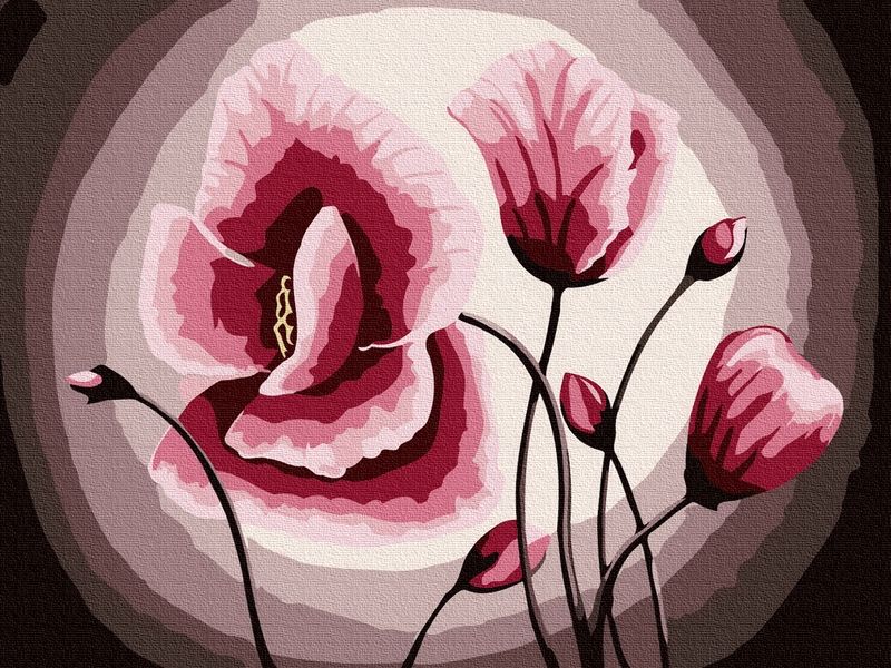 Используя кисти и краски, на холсте можно нарисовать картину с изображением розовых маков на темном фоне. Во времена Карла Великого знать собирала подать маком. Для такого творчества не требуются специальные художественные навыки. Нужно лишь следовать инструкции и время от времени сверяться с цветовой схемой рисунка.