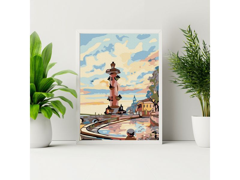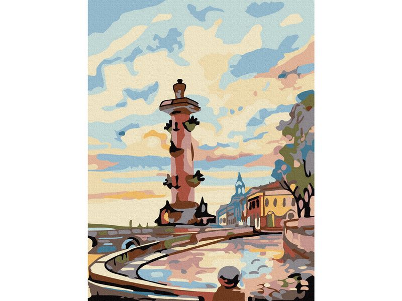 Используя кисти и краски, на холсте можно нарисовать ростральную колонну Санкт-Петербурга. Традиция устанавливать ростральные колонные после сражений появилась еще в древнеримские времена. Колонны украшают ростры (в переводе с латинского носы трофейных кораблей). Для такого творчества не требуются специальные художественные навыки. Нужно лишь следовать инструкции и время от времени сверяться с цветовой схемой рисунка.