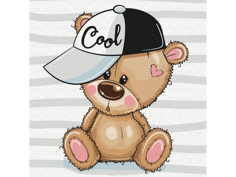 Используя кисти и краски, на холсте можно нарисовать мультяшного медвежонка в кепке. Для такого творчества не требуются специальные художественные навыки. Нужно лишь следовать инструкции и время от времени сверяться с цветовой схемой рисунка.