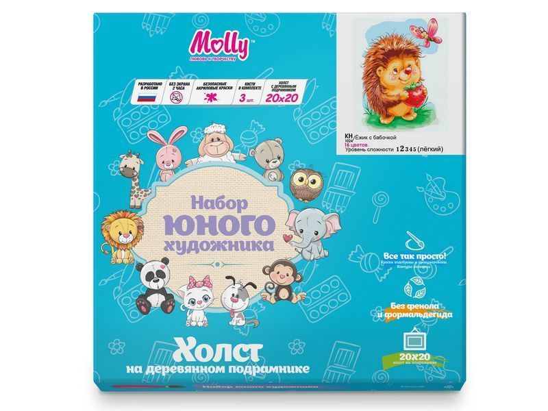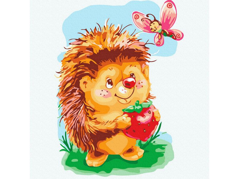 Картина по номерам 20х20 ЁЖИК С БАБОЧКОЙ (16 цветов)