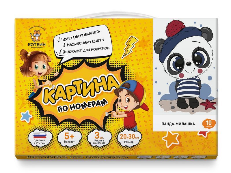 Картина по номерам 20х30 ПАНДА-МИЛАШКА (10 цветов)