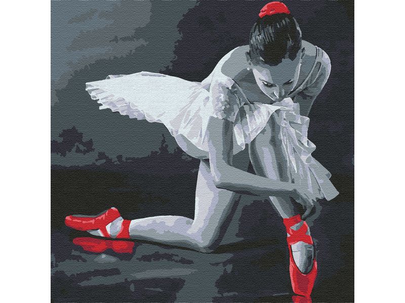 Картина по номерам 30Х30 БАЛЕРИНА В КРАСНЫХ ПУАНТАХ (13 цветов)