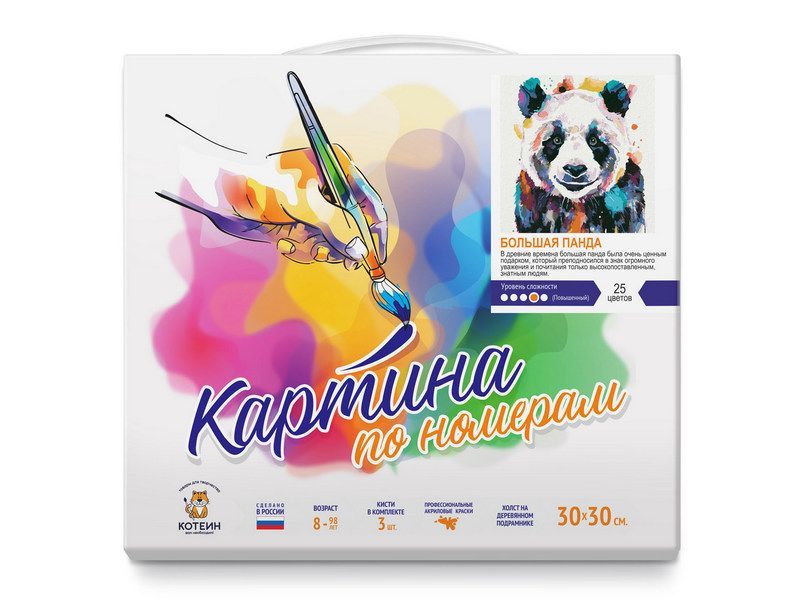 Картина по номерам 30Х30 БОЛЬШАЯ ПАНДА (25 цветов)