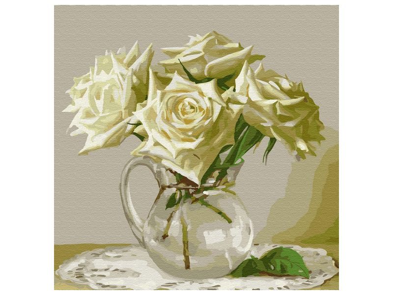 Картина по номерам 30х30 Бузин. Пять белых роз (20 цветов)