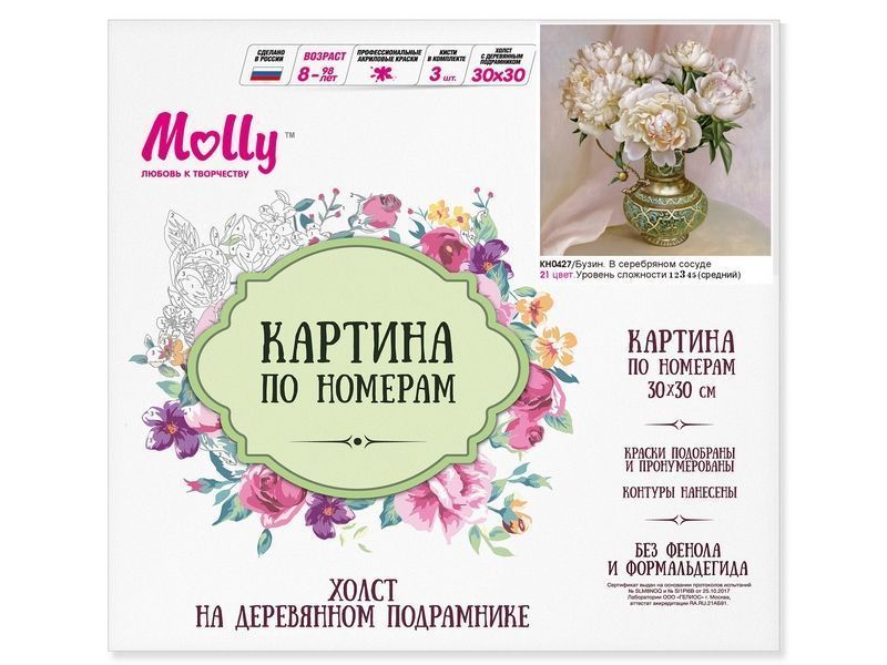 Картина по номерам 30х30 Бузин. В серебряном сосуде (21 цвет)