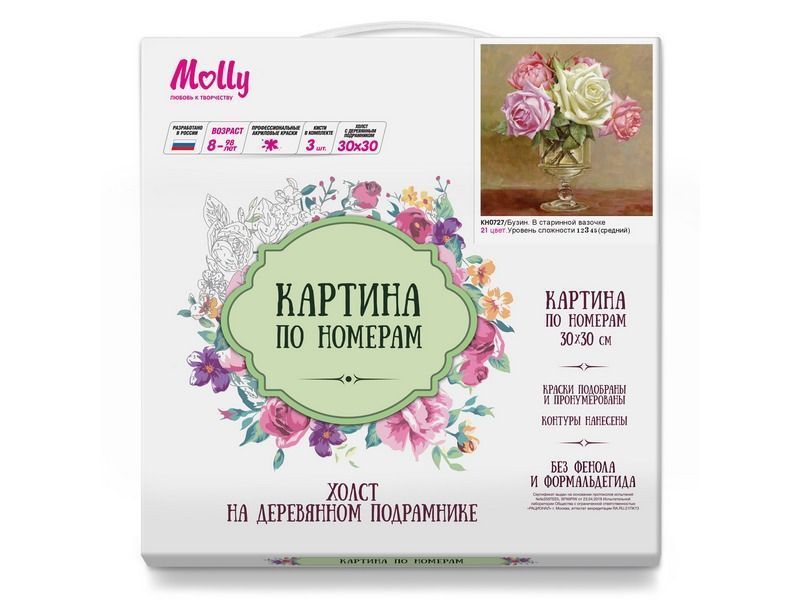 Используя кисти и краски, на холсте можно нарисовать картину Игоря Бузина "В старинной вазочке" - букет разноцветных роз в винтажной вазе. Для такого творчества не требуются специальные художественные навыки. Нужно лишь следовать инструкции и время от времени сверяться с цветовой схемой рисунка.