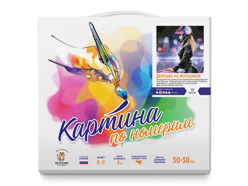 Картина по номерам 30х30 ДЕВУШКА НА МОТОЦИКЛЕ (19 цветов)
