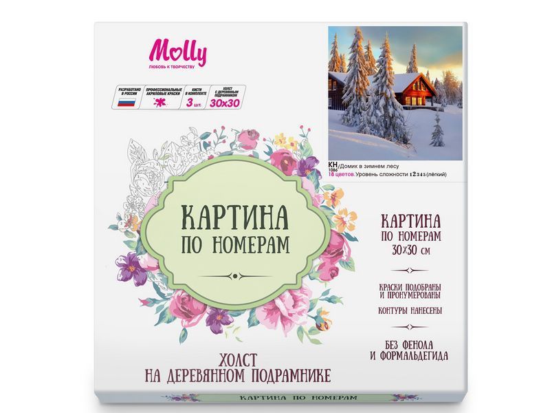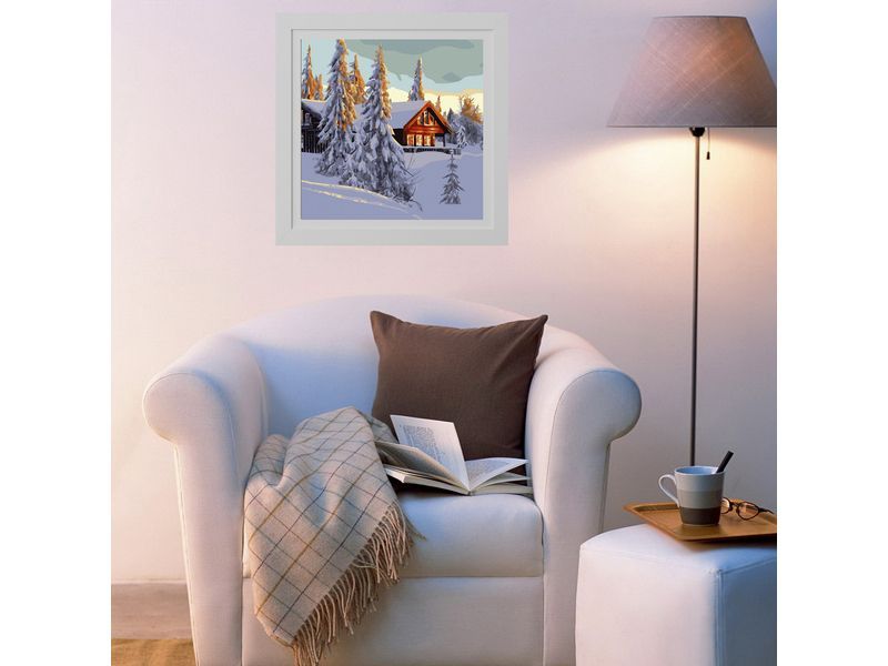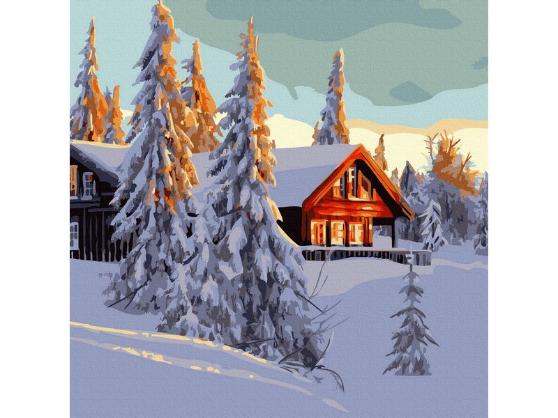 Картина по номерам 30х30 ДОМИК В ЗИМНЕМ ЛЕСУ (18 цветов)
