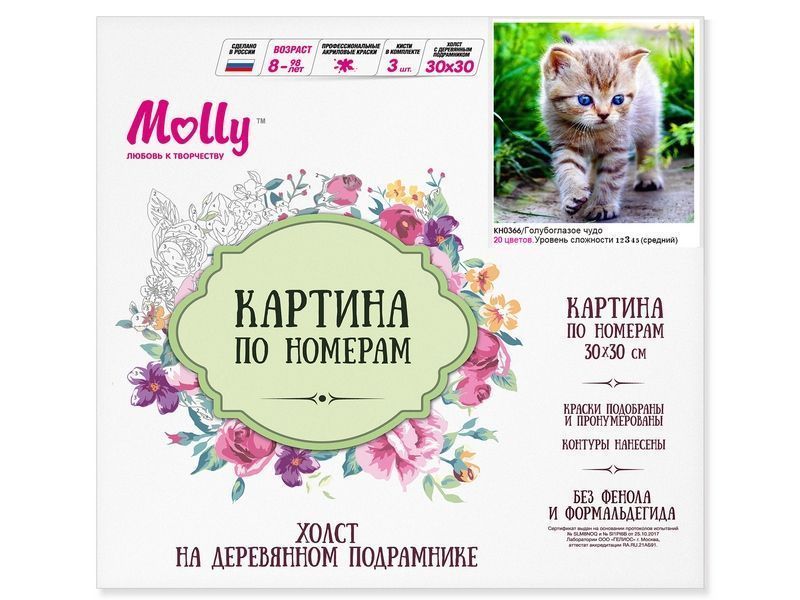 Картина по номерам 30х30 Голубоглазое чудо (20 цветов)
