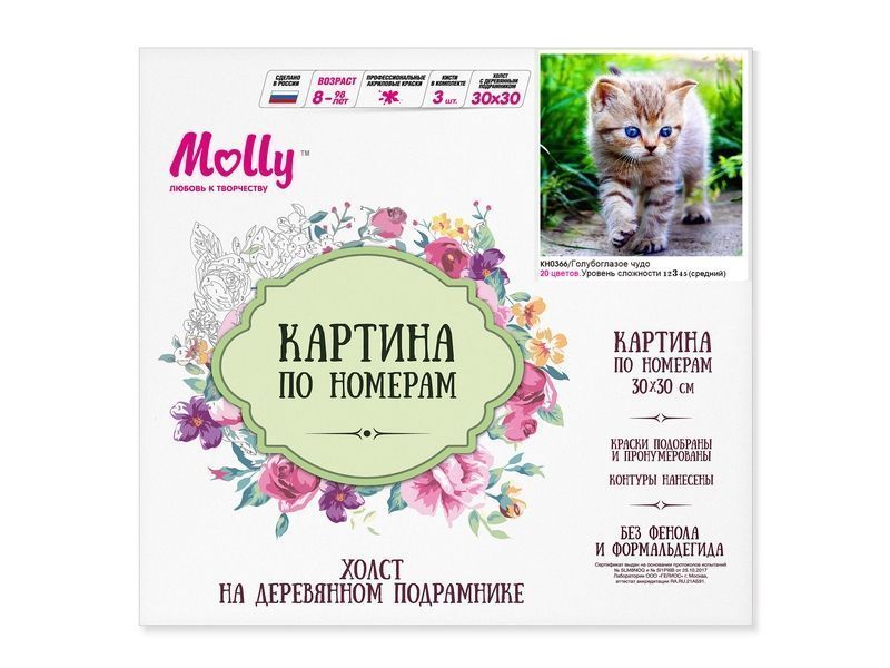 Картина по номерам 30Х30 ГОЛУБОГЛАЗОЕ ЧУДО (20 цветов)