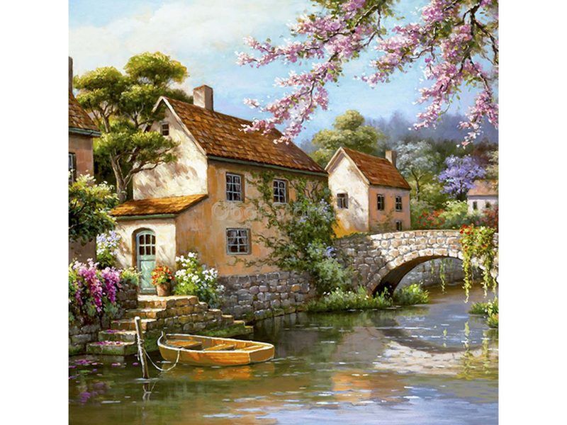 Картина по номерам 30х30 Городок на реке (19 цветов)