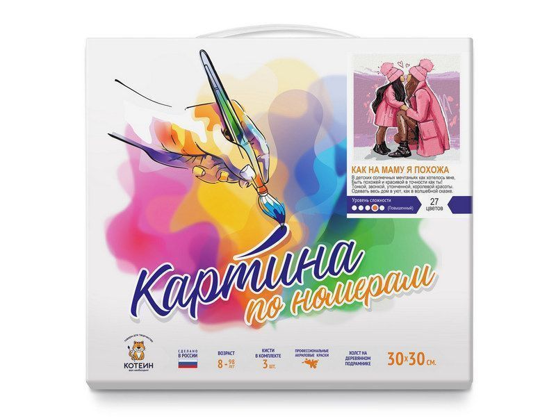 Картина по номерам 30Х30 КАК НА МАМУ Я ПОХОЖА (27 цветов)