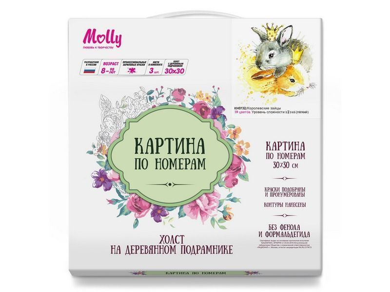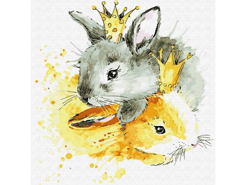 Используя кисти и краски, на холсте можно нарисовать рыжего и серого королевских зайцев. Для такого творчества не требуются специальные художественные навыки. Нужно лишь следовать инструкции и время от времени сверяться с цветовой схемой рисунка.