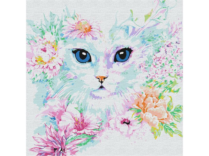 Используя кисти и краски, на холсте можно нарисовать симпатичную кошечки, прячущуюся в цветах. Для такого творчества не требуются специальные художественные навыки. Нужно лишь следовать инструкции и время от времени сверяться с цветовой схемой рисунка.