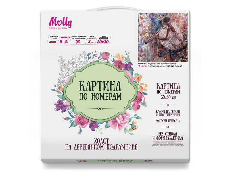 Используя кисти и краски, на холсте можно нарисовать юную балерину в пачке, надевающую пуанты. На картине запечатлен момент максимального спокойствия и сосредоточения. Для такого творчества не требуются специальные художественные навыки. Нужно лишь следовать инструкции и время от времени сверяться с цветовой схемой рисунка.