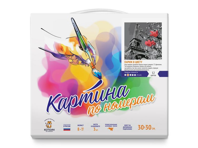 Картина по номерам 30Х30 ПАРИЖ В ЦВЕТУ (12 цветов)