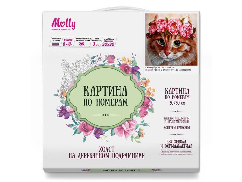 Картина по номерам 30х30 Пушистая красотка (21 цвет)