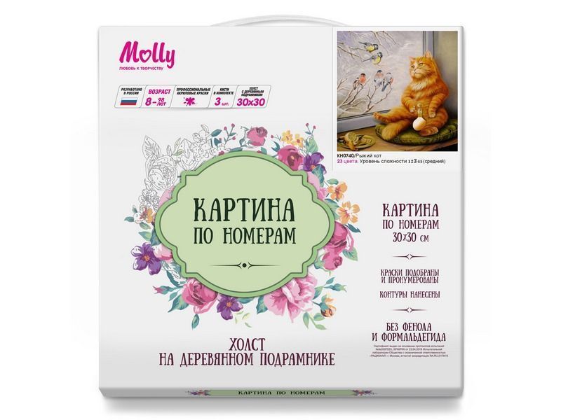 Картина по номерам 30х30 Рыжий кот (23 цвета)