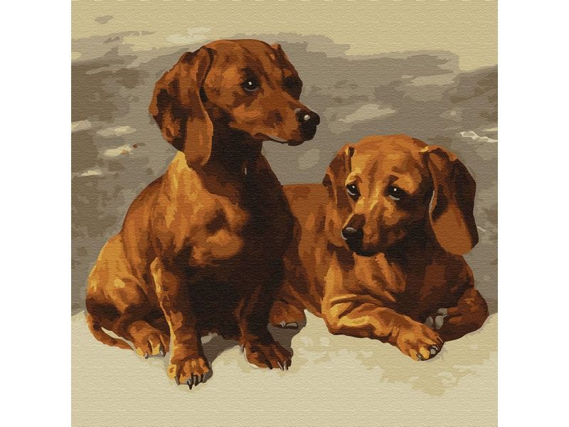 Картина по номерам 30х30 Таксы (18 цветов)