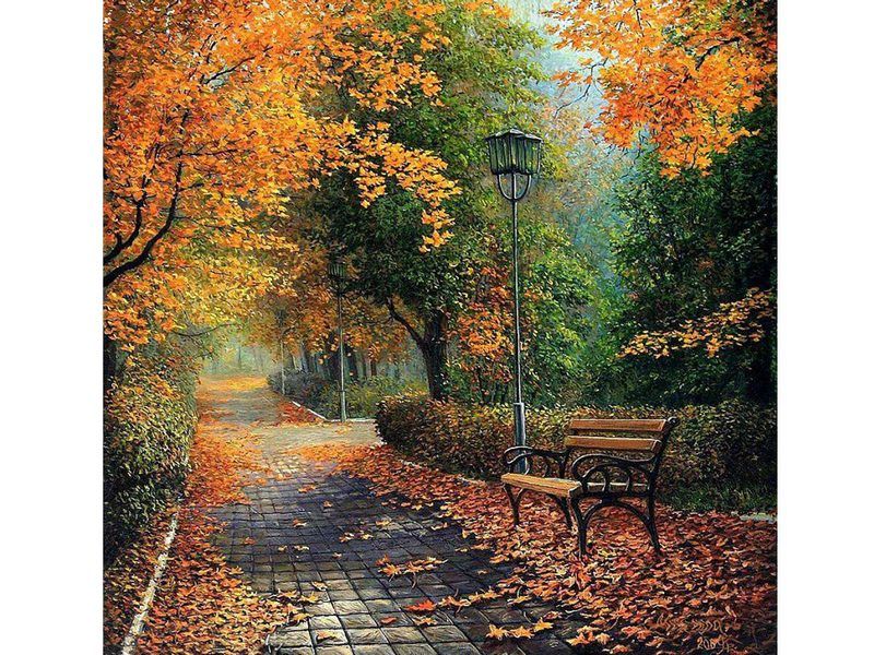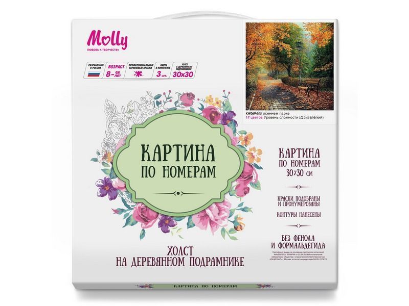 Картина по номерам 30х30 В осеннем парке (17 цветов)
