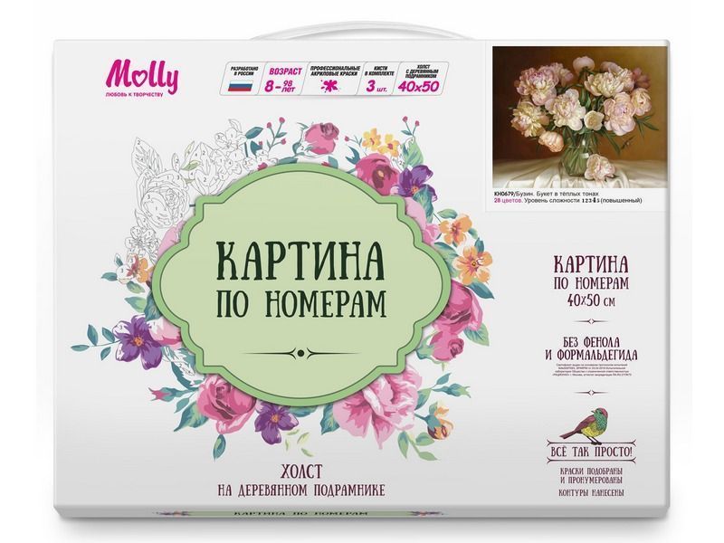 Используя кисти и краски, на холсте можно нарисовать картину Игоря Бузина "Букет в теплых тонах" - букет пышных, розовых пионов в прозрачной вазе. Для такого творчества не требуются специальные художественные навыки. Нужно лишь следовать инструкции и время от времени сверяться с цветовой схемой рисунка.