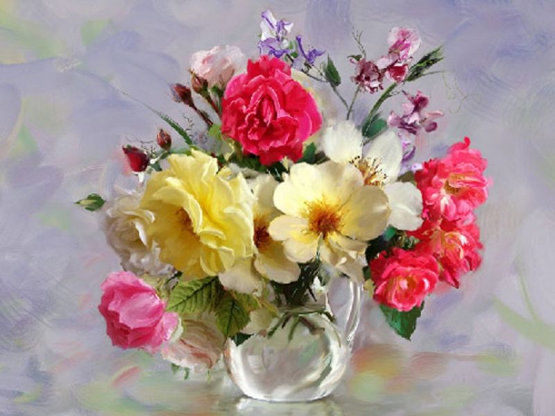 Картина по номерам 40х50 Бузин. Розы в кувшинчике (29 цветов)