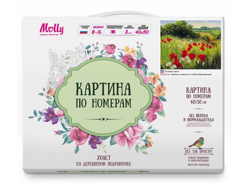 Картина по номерам 40х50 ЛУГОВЫЕ ЦВЕТЫ (26 цветов)