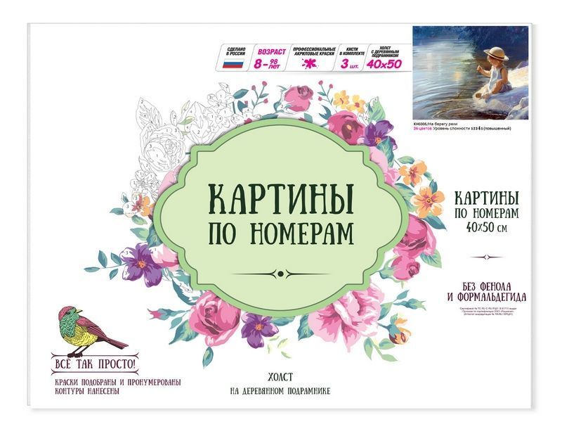 Картина по номерам 40х50 НА БЕРЕГУ РЕКИ (26 цветов)