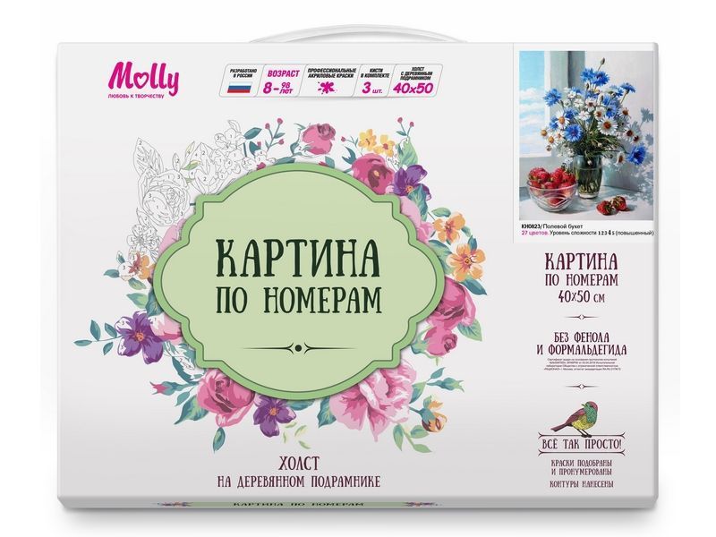 Картина по номерам 40х50 ПОЛЕВОЙ БУКЕТ (27 цветов)