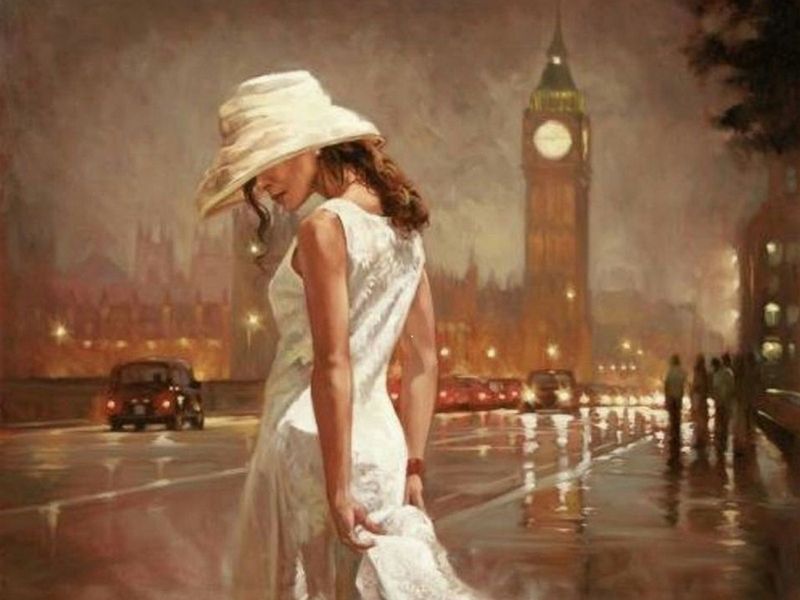 Используя кисти и краски, на холсте можно нарисовать прекрасную девушку, гуляющую по городу после дождя. Для такого творчества не требуются специальные художественные навыки. Нужно лишь следовать инструкции и время от времени сверяться с цветовой схемой рисунка.