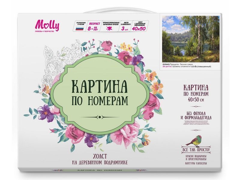 Используя кисти и краски, на холсте можно нарисовать картину русского художника Игоря Прищепы "Лесное озеро". На картине изображен пейзаж с березами, сквозь ветви которых видно лесное озеро. На противоположной стороне - сосновый бор. Для такого творчества не требуются специальные художественные навыки. Нужно лишь следовать инструкции и время от времени сверяться с цветовой схемой рисунка.
