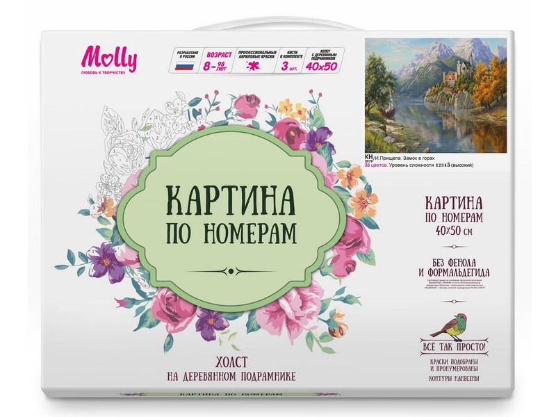Используя кисти и краски, на холсте можно нарисовать картину русского художника Игоря Прищепы "Замок в в горах". Живописный пейзаж вокруг прекрасно гармонирует с замком. Для такого творчества не требуются специальные художественные навыки. Нужно лишь следовать инструкции и время от времени сверяться с цветовой схемой рисунка.